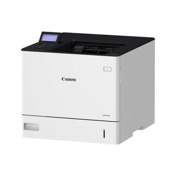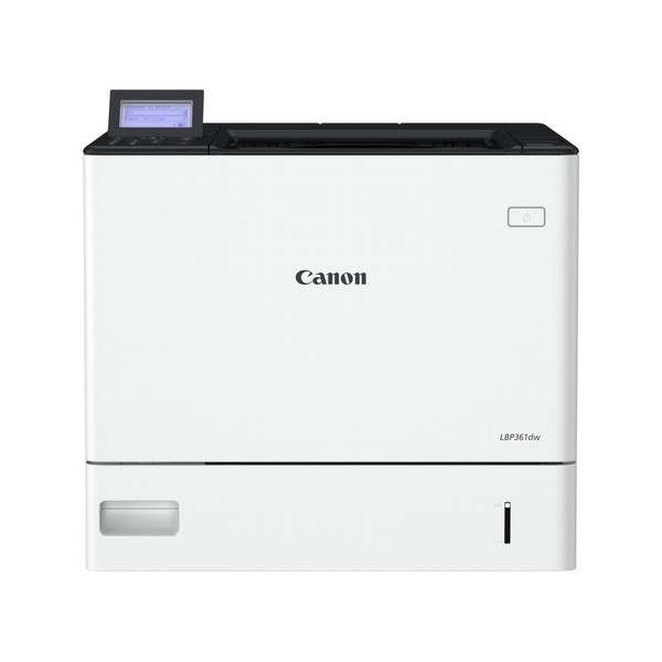 Canon i-SENSYS LBP361dw. Tecnologia di stampa: Laser. Numero di cartucce di stampa: 1, Ciclo massimo di funzionamento: 275000 pagine per mese. Risoluzione massima: 1200 x 1200 DPI. Massimo formato carta serie ISO A: A4. Velocità di stampa (nero, qualità normale, A4/US Letter): 61 ppm, Stampa fronte/retro. Tipologia display: LCD. Wi-Fi. Colore del prodotto: Bianco
