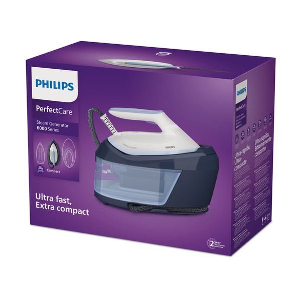 Ultra rapido.Estremamente compatto. PerfectCare serie 6000 è progettato per offrire la migliore erogazione di vapore possibile, ora in un design compatto e completamente rinnovato. Stiratura più veloce con ingombro ridotto. Garanzia di protezione dalle bruciature* grazie alla tecnologia OptimalTEMP.