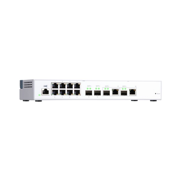 QNAP QSW-M408-2C. Tipo interruttore: Gestito, Livello del commutatore: L2. Tipo di porte RJ-45: 10G Ethernet (100/1000/10000), Quantità di porte RJ-45: 2, Console port: RJ-45. Full duplex. Dimensioni tavola MAC: 16000 voci, Capacità di commutazione: 96 Gbit/s. Standard di rete: IEEE 802.1Q,IEEE 802.1ab,IEEE 802.1p,IEEE 802.1w,IEEE 802.3,IEEE 802.3ad,IEEE 802.3ae,IEEE...