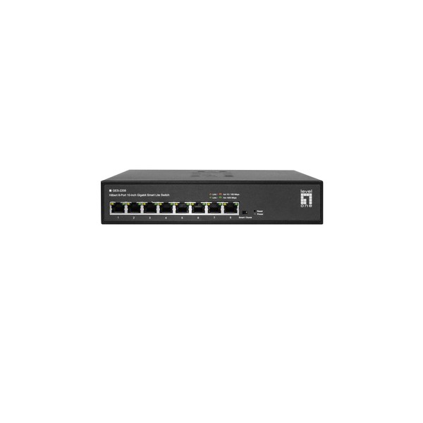 LevelOne GES-2208. Tipo interruttore: Gestito, Livello del commutatore: L2. Tipo di porte RJ-45: Gigabit Ethernet (10/100/1000), Quantità di porte RJ-45: 8. Full duplex. Dimensioni tavola MAC: 4000 voci, Capacità di commutazione: 16 Gbit/s. Standard di rete: IEEE 802.1Q, IEEE 802.3, IEEE 802.3ab, IEEE 802.3az, IEEE 802.3u, IEEE 802.3x, IEEE 802.3z. Connettore di alimentazione: Jack di ingresso AC. Montaggio rack