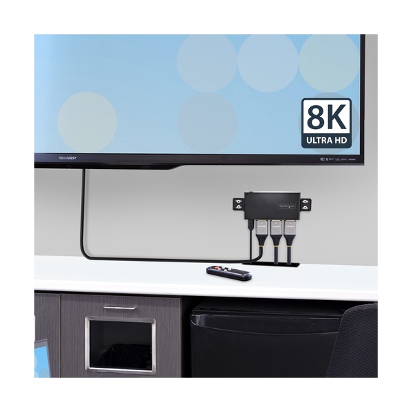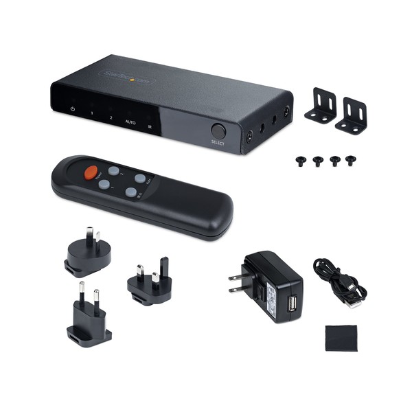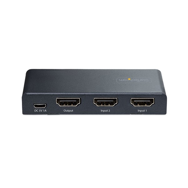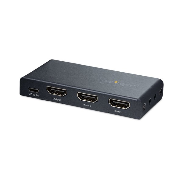 Commutazione tra due sorgenti video HDMI su un unico display, con supporto per risoluzioni fino a 8K 60HzQuesto switch HDMI a 2 porte consente di collegare due sorgenti HDMI a un singolo ingresso HDMI su uno schermo.Risoluzione 8K 60HzLo switch HDMI supporta risoluzioni fino a 8K 60Hz. Supporta inoltre risoluzioni inferiori a frequenze di aggiornamento più elevate come 4K 144Hz, 4K 120Hz e 1080p 240Hz.Questo switch video è conforme alla norma HDMI 2.1 e supporta funzioni quali la frequenza di aggiornamento variabile (VRR), la modalità automatica a bassa latenza (ALLM) e il controllo dell'elettronica di consumo (CEC). È retrocompatibile con i dispositivi HDMI 2.0 (e inferiori).Funzionamento Automatico o ManualeLo Switch video 8K presenta tre opzioni per la selezione del dispositivo sorgente. La modalità automatica rileva e seleziona il dispositivo sorgente attivato più di recente, oppure torna all'ultimo dispositivo sorgente attivo. La modalità manuale consente di selezionare la porta desiderata utilizzando i pulsanti o il telecomando in dotazione (batterie non incluse). Il telecomando può attivare o disattivare la modalità di commutazione automatica e la funzionalità IR.Opzioni di Installazione FlessibiliPer alimentare l'unità; utilizzare il caricatore da muro USB e il cavo USB Micro-B da 78 cm in dotazione. Se non è disponibile una presa a muro, l'interruttore 8K può essere alimentato anche tramite una porta USB da 5V 1A.Il kit di montaggio e i piedini in gomma inclusi consentono opzioni di installazione versatili. L'alloggiamento in metallo ne aumenta la durata, rendendolo adatto all'installazione e all'uso in una varietà di ambienti.Questo prodotto è supportato per 2 anni, compresa l'assistenza tecnica gratuita 24/5 multilingue.The StarTech.com Advantage