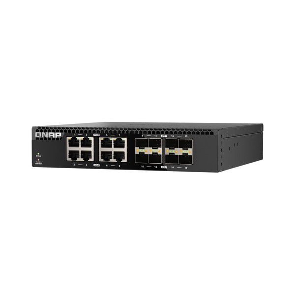 QSW-3216R-8S8TSwitch non gestito a 16 porte 10GbE rackmounted a mezza larghezza per ambienti di rete ad alta velocità SMB/SOHO