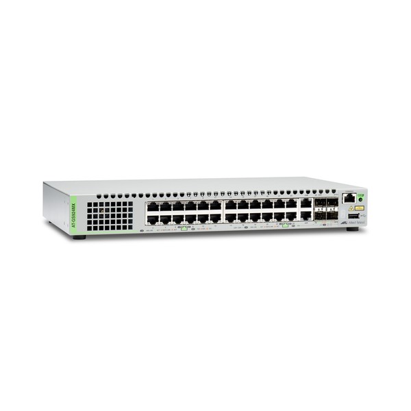 Allied Telesis AT-GS924MX-50. Tipo interruttore: Gestito, Livello del commutatore: L2. Tipo di porte RJ-45: Gigabit Ethernet (10/100/1000), Quantità di porte RJ-45: 24, Quantità di moduli SFP+ installati: 2. Full duplex. Dimensioni tavola MAC: 16000 voci, Capacità di commutazione: 92 Gbit/s. Standard di rete: IEEE 802.1AX,IEEE 802.1D,IEEE 802.1Q,IEEE 802.1ab,IEEE 802.1p,IEEE 802.1s,IEEE 802.1v,IEEE.... Montaggio rack