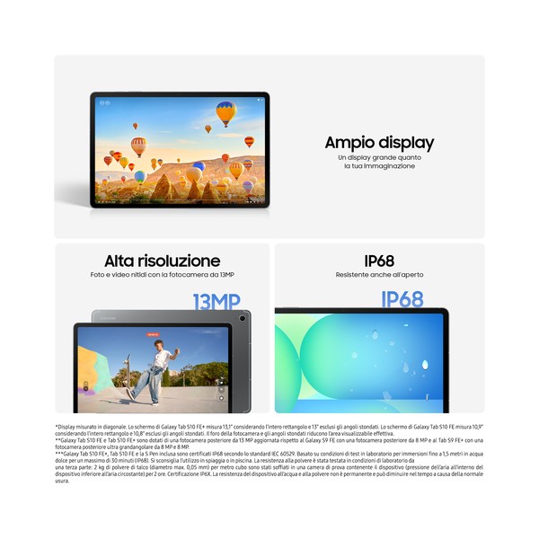 Sogna in grande con Galaxy Tab S10 FE da 10,9" e ancora più in grande con il nuovo formato da 13,1" di Galaxy Tab S10 FE+ — il più ampio di sempre su Galaxy Tab Serie FE.