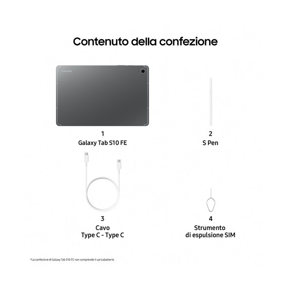 Samsung Galaxy Tab S10 FE, Android Tablet, Display 10.9" LCD, Wifi, RAM 8GB, 128GB, 8.000 mAh, S Pen, Android 15, IP68, Gray