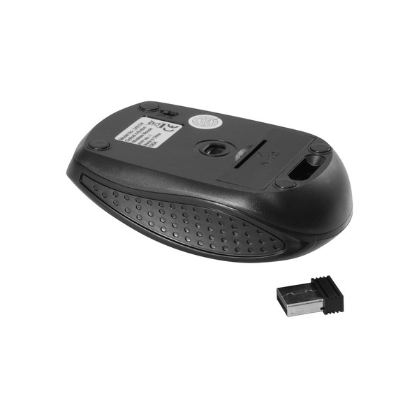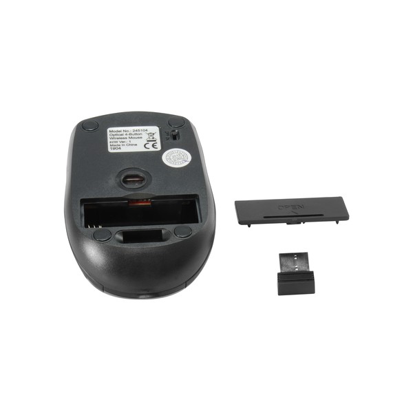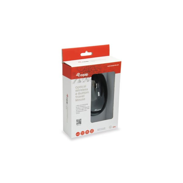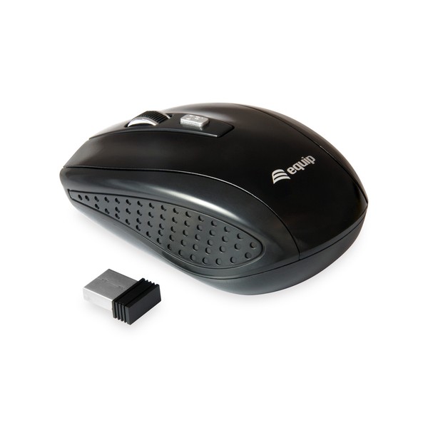 Equip 245104. Fattore di forma: Ambidestro. Tecnologia di rilevamento del movimento: Ottico, Interfaccia dispositivo: RF Wireless, Risoluzione movimento: 1600 DPI, Tipo di pulsanti: Tasti premuti, Numero di tasti: 4, Tipo di scorimmento: Rotella. Alimentazione: Batterie. Colore del prodotto: Nero