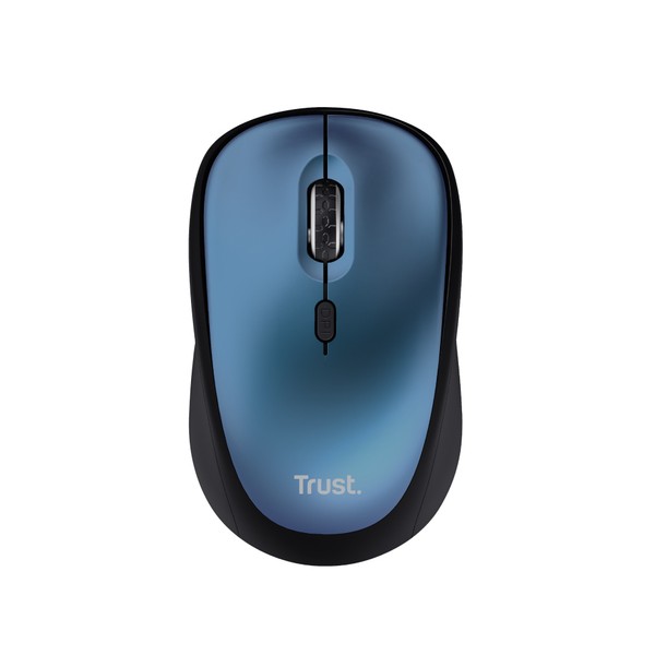 Trust Yvi+. Fattore di forma: Mano destra. Tecnologia di rilevamento del movimento: Ottico, Interfaccia dispositivo: RF Wireless, Risoluzione movimento: 1600 DPI, Tipo di pulsanti: Tasti premuti, Numero di tasti: 4, Tipo di scorimmento: Rotella. Alimentazione: Batterie. Colore del prodotto: Nero, Blu