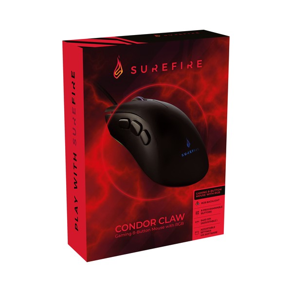 Il mouse gaming SureFire Condor Claw grazie alla sua risoluzione a 6400 DPI, all'illuminazione RGB a gamma completa e agli 8 pulsanti programmabili ti offrirà una marcia in più per surclassare la concorrenza.