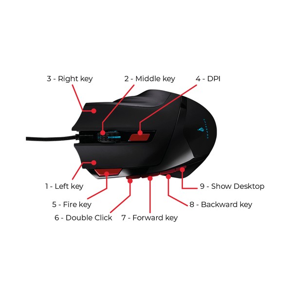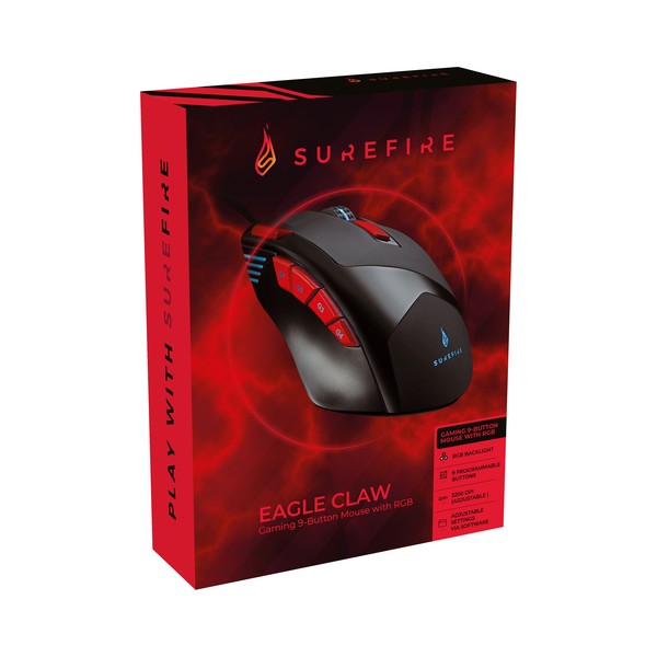 Il mouse gaming SureFire Eagle Claw dispone di 9 pulsanti programmabili, illuminazione RGB a gamma completa e risoluzione fino a 3200 DPI, per creare la configurazione ideale e ottenere il massimo durante il gioco.