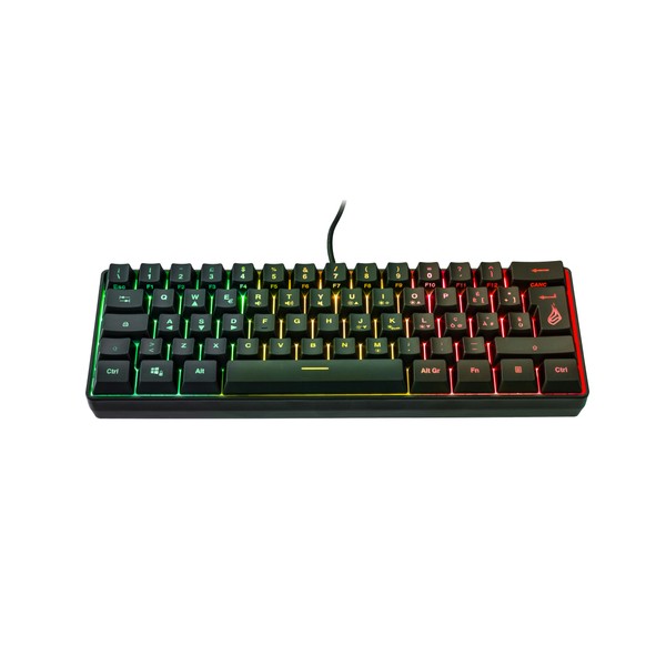 Verbatim KingPin X1. Fattore di forma tastiera: 60%. Stile tastiera: Dritto. Tecnologia di connessione: Cablato, Interfaccia dispositivo: USB, Interruttore a chiave per tastiera: Interruttore a chiave a membrana, Struttura tastiera: QWERTY, Numero pulsanti tastiera: 62. Tipologia di retroilluminazione: LED RGB. Lunghezza cavo: 1,8 m. Utilizzo raccomandato: Giocare. Colore del prodotto: Nero