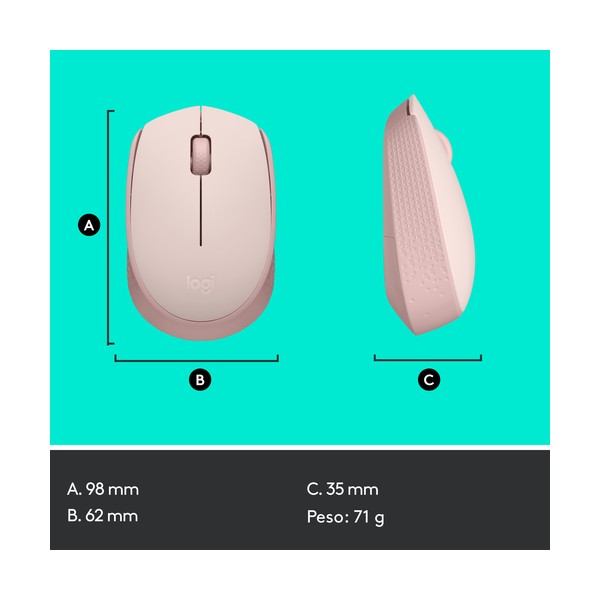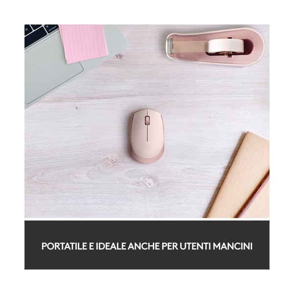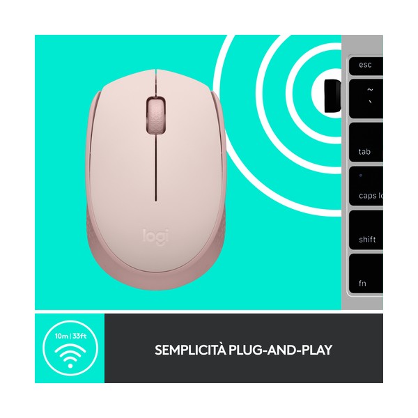 Logitech M171 Mouse Wireless per PC, Mac, Laptop, 2,4 GHz con Mini Ricevitore USB, Tracciamento Ottico, Durata della Batteria di 12 mesi, Ambidestro - Rosa
