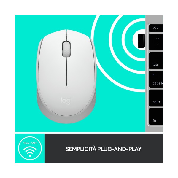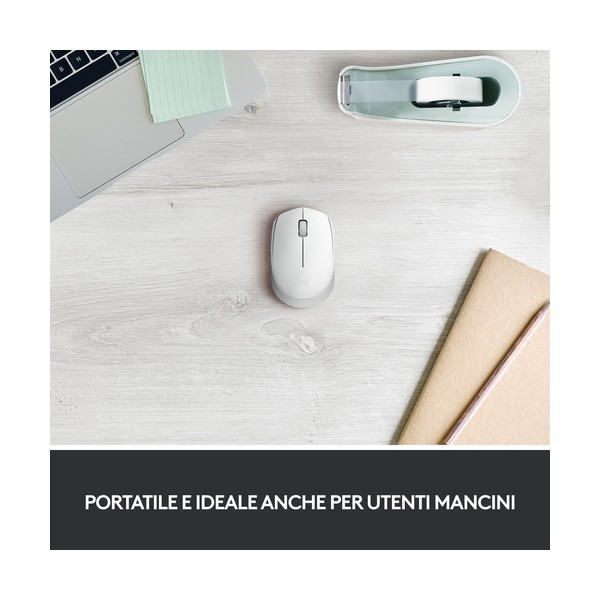 Logitech M171 Mouse Wireless per PC, Mac, Laptop, 2,4 GHz con Mini Ricevitore USB, Tracciamento Ottico, Durata della Batteria di 12 mesi, Ambidestro - Bianco
