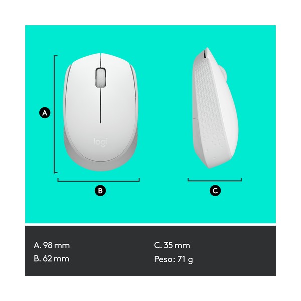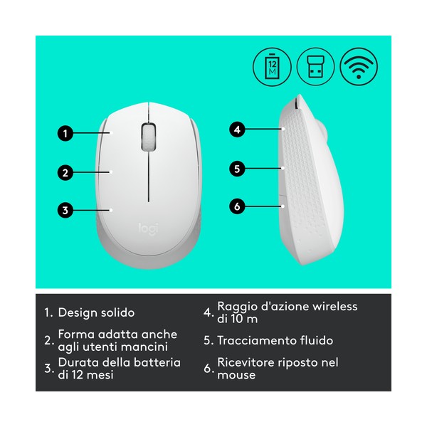 ● Connessione Plug-and-Play: Collega il mouse wireless al computer tramite il ricevitore USB Logitech robusto e affidabile, che si collega alla porta USB del computer