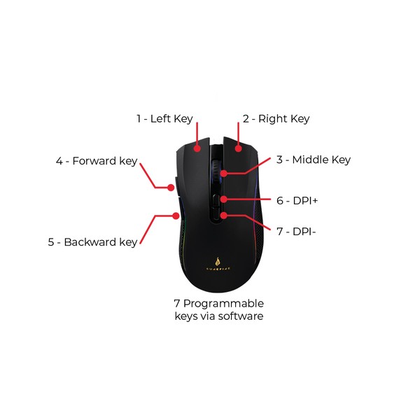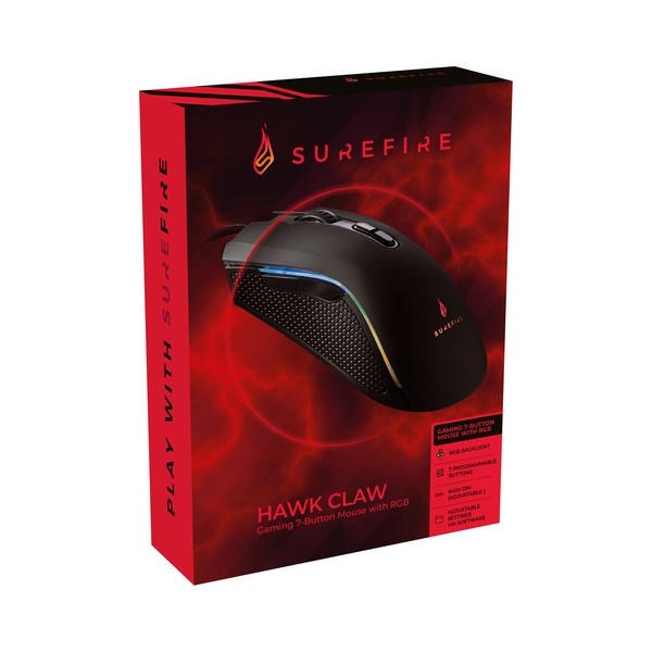 Grazie al sensore ottico altamente reattivo, alla risoluzione di 6400 DPI, ai 7 pulsanti programmabili e all'illuminazione a LED RGB a gamma completa, il mouse SureFire Hawk Claw è un prodotto concepito per essere pronto per giocare.