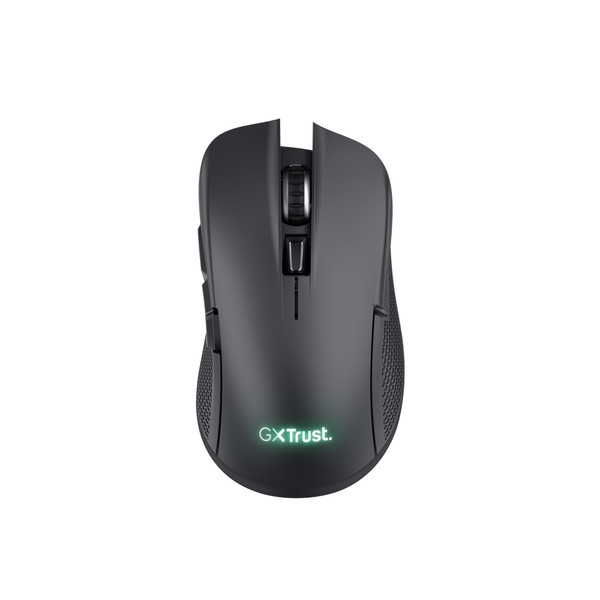 Trust GXT 923 YBAR. Fattore di forma: Mano destra. Tecnologia di rilevamento del movimento: Ottico, Interfaccia dispositivo: RF Wireless, Risoluzione movimento: 7200 DPI, Tipo di pulsanti: Tasti premuti, Numero di tasti: 6, Tipo di scorimmento: Rotella, Accelerazione (max): 15 G. Alimentazione: Batterie. Colore del prodotto: Nero