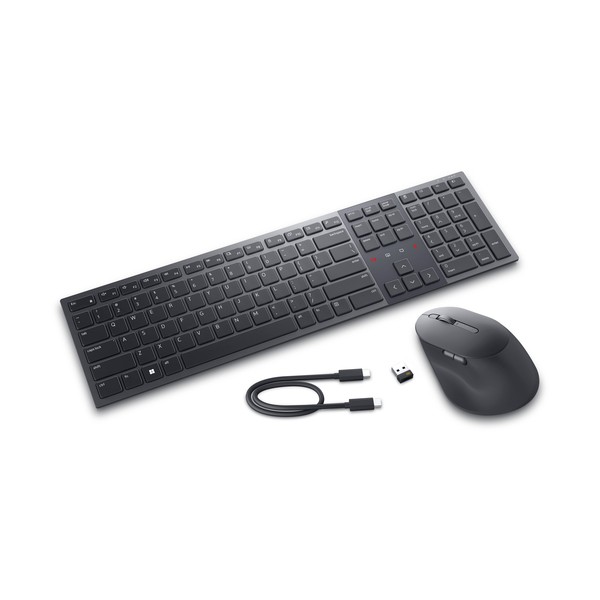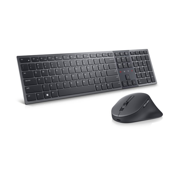 DELL KM900. Fattore di forma tastiera: Full-size (100%), Tecnologia di connessione: Wireless, Interfaccia dispositivo: RF senza fili + Bluetooth, Interruttore a chiave per tastiera: Tasto con meccanismo a forbici, Struttura tastiera: QWERTY, Utilizzo raccomandato: Ufficio. Colore del prodotto: Grafite. Mouse incluso