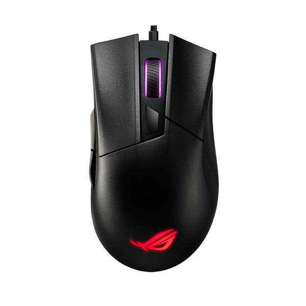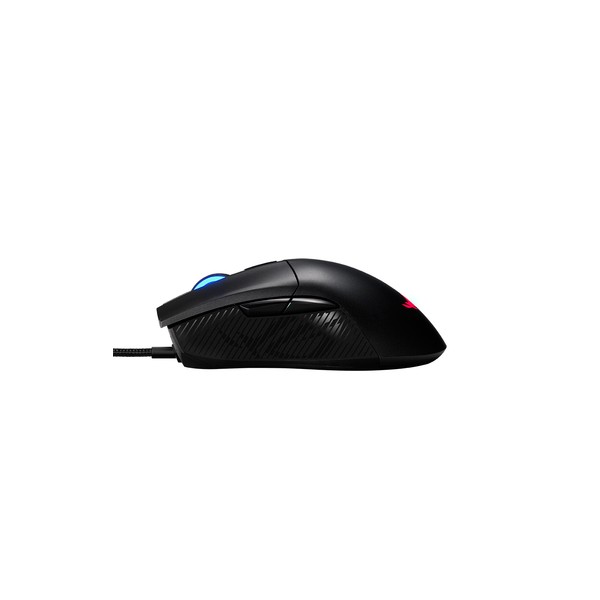ASUS ROG Gladius II Core. Fattore di forma: Mano destra. Tecnologia di rilevamento del movimento: Ottico, Interfaccia dispositivo: USB, Risoluzione movimento: 6200 DPI, Tipo di pulsanti: Tasti premuti, Numero di tasti: 6, Tipo di scorimmento: Rotella. colore d'illuminazione: Rosso/Verde/Blu. Alimentazione: Cavo. Colore del prodotto: Nero