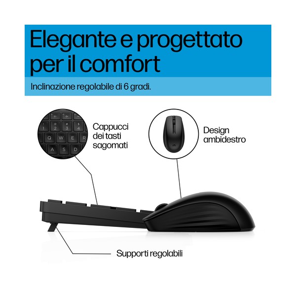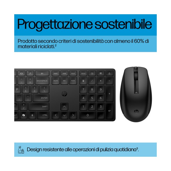 Combinazione di tastiera e mouse per una produttività costante Una combinazione di tastiera e mouse wireless perfetta per ogni tua esigenza: comfort, produttività, affidabilità e stile. Oltre 20 tasti personalizzabili sulla tastiera[1] e un mouse dal tracciamento ad alta precisione per lavorare meglio e più velocemente. Questa combinazione di tastiera e mouse contiene materiali riciclati[2] ed è facile da tenere pulita e igienizzata.[3]