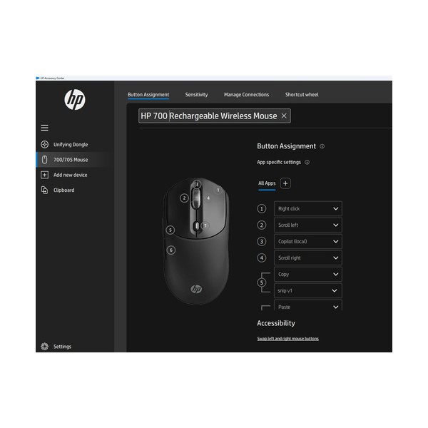 Semplificate i flussi di lavoro con le scelte rapide per le videoconferenze e la produttività, grazie ad HP Shortcut Wheel,[2] 7 pulsanti programmabili,[3] il pulsante Copilot dedicato[8] e una rotellina di scorrimento rapido in metallo.