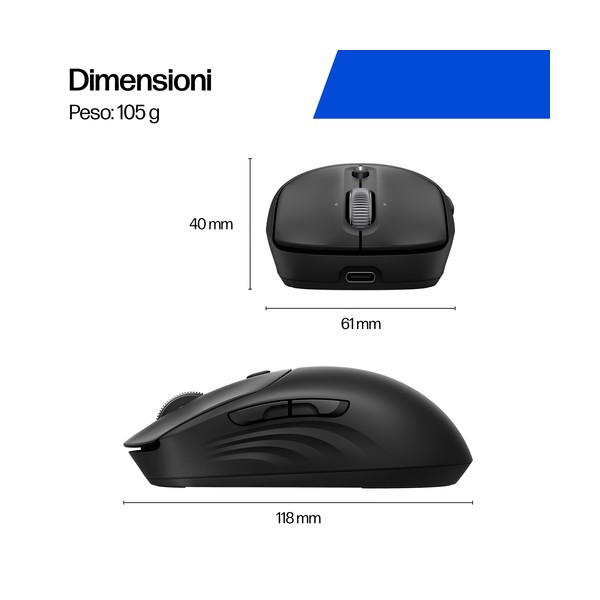 Migliorate la vostra giornata lavorativa con il mouse wireless ricaricabile HP. Progettato per adattarsi al vostro ritmo, questo dispositivo combina scelte rapide più smart, ricarica ultraveloce[1] e un design resistente per aiutarvi a lavorare in modo sicuro ed efficiente, ovunque.