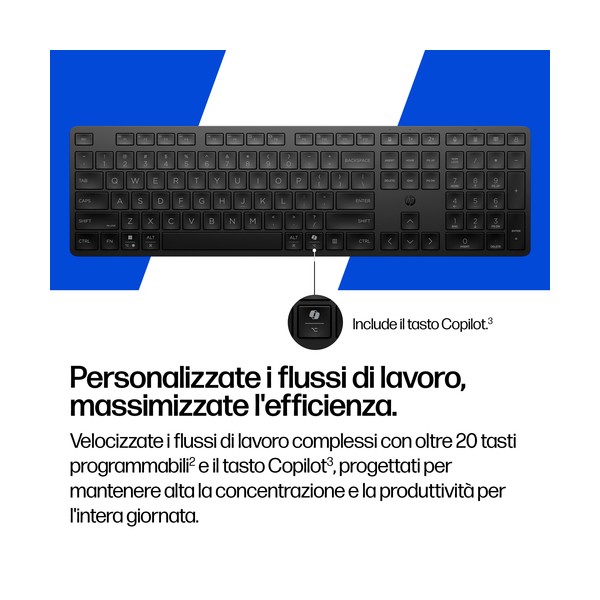 Personalizzate la tastiera per semplificare le attività e lavorate più velocemente con le scelte rapide. Assumete il controllo del vostro flusso di lavoro con oltre 20 tasti programmabili[2] e un tasto Copilot dedicato[3] per un rapido accesso all'AI.