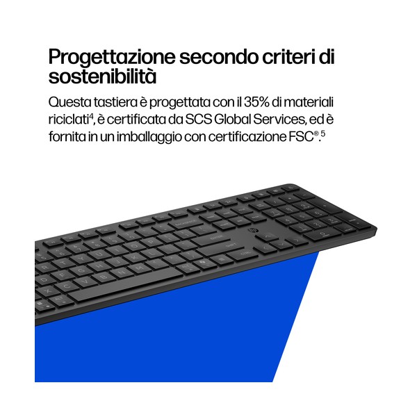 Questa tastiera è la scelta ideale per un futuro più sostenibile, perché contiene almeno il 35% di materiale riciclato[4], certificato da SCS Global Services, e viene fornita in un imballaggio con certificazione FSC.[5]