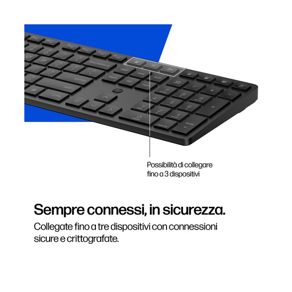 Connettività e sicurezza continue Rimanete connessi e aumentate la produttività. Questa tastiera si connette in modo sicuro a più dispositivi, semplifica il multitasking con le scelte rapide intelligenti e offre un elevato comfort per tutta la giornata, così potrete concentrarvi esclusivamente su ciò che conta.