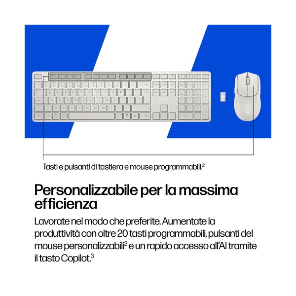 • Eliminate le attività ripetitive e rimanete concentrati su ciò che conta. Assegnate le azioni che utilizzate più di frequente agli oltre 20 tasti programmabili[2], per la massima velocità ed efficienza. Migliorate il controllo con i pulsanti del mouse personalizzabili[2] e accedete al supporto AI tramite il tasto Copilot.[3]