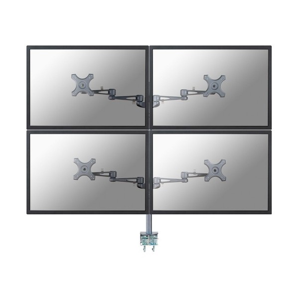 Questo braccio porta monitor NewStar, modello FPMA-D935D4 consente di collegare quattro schermi LCD/LED/TFT su di una scrivania con la modalità di fissaggio su piano attraverso un morsetto.