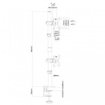 Questo braccio porta monitor NewStar, modello FPMA-D550DVBLACK consente di collegare due schermi LCD/LED/TFT su di una scrivania con la modalità di fissaggio su piano attraverso vite centrale o morsetto.