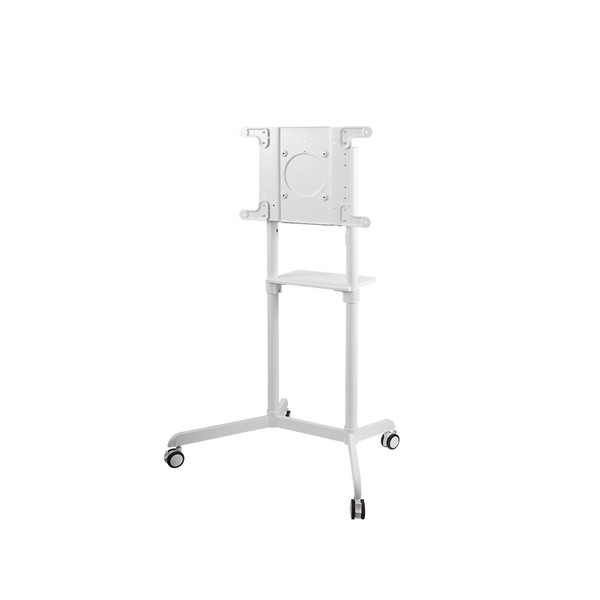 Il supporto a pavimento Neomounts by Newstar, modello NS-M1250WHITE è un mobiletto portatile per schermi LCD/LED/Plasma fino a 70" (178 cm). Utilizzate un supporto a pavimento per sfruttare pienamente le capacità del vostro schermo. Il supporto è facile da regolare in altezza. È inoltre possibile inclinare lo schermo in senso verticale creando l'angolo di visione ideale. I cavi possono essere collocati attraverso la predisposizione di passaggio all interno della colonna. Il carrello è dotato di quattro solide ruote piroettanti, di cui le due anteriori dotate di freno. Il supporto NS-M1250WHITE ha una capacità massima di trasporto di 70 kg. Questo prodotto è adatto per schermi con fori VESA modello da 200x200 fino a 600x400 mm. Il supporto è adatto anche per Microsoft Surface Hub 2S(X). Viene fornito con un supporto per poter semplicemente appoggiare un lettore DVD e il computer portatile. Dotato di ruote, è facile da spostare.