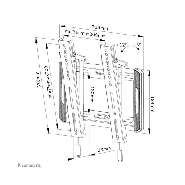 Il Neomounts by Newstar WL35-550BL12 è un supporto da parete inclinabile per schermi piatti fino a 55" con un peso massimo consigliato di 45 kg. La versatile tecnologia di inclinazione (12°) consente di creare l'angolo di visione ottimale. Il WL35-550BL12 ha una profondità di 3,3 cm ed è adatto per schermi con fori VESA da 75x75 a 200x200 mm. Il supporto è dotato di un sistema intelligente magnetico pull %26 release, che consente di fissare la TV in un batter d'occhio ed in modo sicuro e solido. Successivamente, le cinghie di trazione/ rilascio possono essere facilmente nascoste dietro lo schermo facendo clic sul magnete sul supporto. La livella a bolla integrata assicura una facile installazione del supporto.