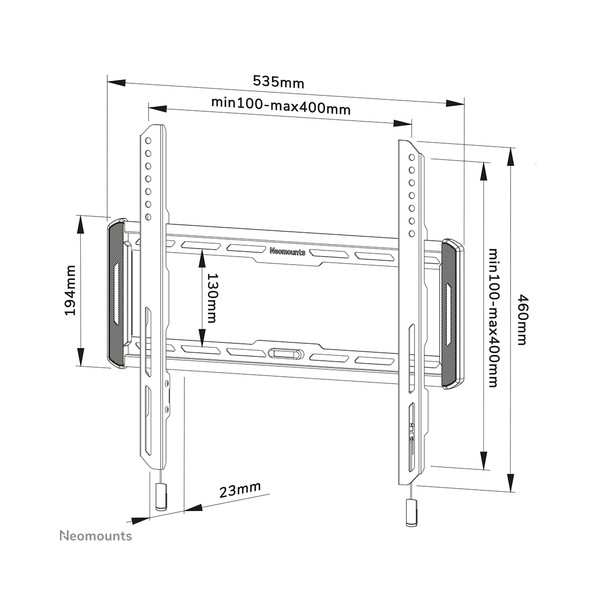 Il Neomounts by Newstar WL30-550BL14 è un supporto da parete fisso per schermi piatti fino a 65" con un peso massimo consigliato di 60 kg. Il WL30-550BL14 è ultrapiatto con una profondità di 2,3 cm ed è adatto per schermi con fori VESA da 100x100 a 400x400 mm. Il supporto è dotato di un sistema intelligente magnetico pull %26 release, che consente di fissare la TV in un batter d'occhio ed in modo sicuro e solido. Successivamente, le cinghie di trazione/ rilascio possono essere facilmente nascoste dietro lo schermo facendo clic sul magnete sul supporto. La livella a bolla integrata assicura una facile installazione del supporto.