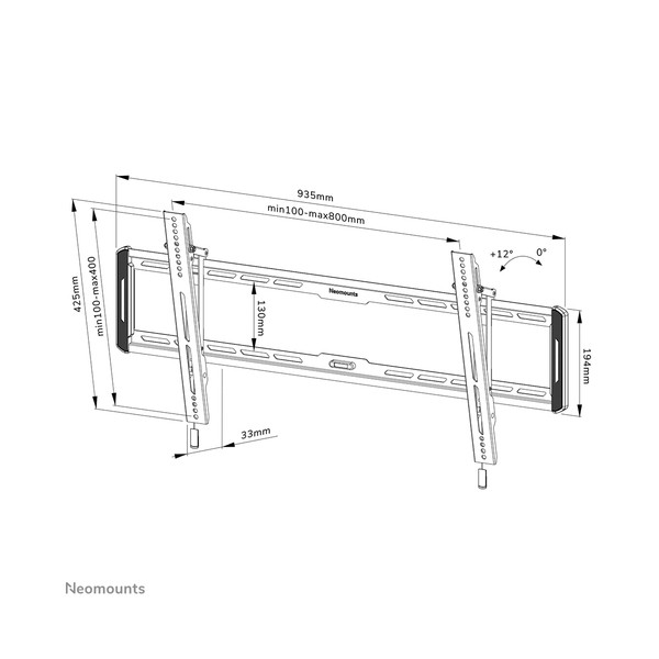 Il Neomounts by Newstar WL35-550BL18 è un supporto da parete inclinabile per schermi piatti fino a 86" con un peso massimo consigliato di 70 kg. La versatile tecnologia di inclinazione (12°) consente di creare l'angolo di visione ottimale. Il WL35-550BL18 ha una profondità di 3,3 cm ed è adatto per schermi con fori VESA da 100x100 a 800x400 mm. Il supporto è dotato di un sistema intelligente magnetico pull %26 release, che consente di fissare la TV in un batter d'occhio ed in modo sicuro e solido. Successivamente, le cinghie di trazione/ rilascio possono essere facilmente nascoste dietro lo schermo facendo clic sul magnete sul supporto. La livella a bolla integrata assicura una facile installazione del supporto.