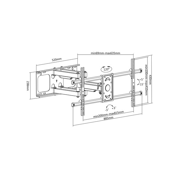 Equip 650324. Peso massimo (capacità): 75 kg, Capienza minima dimensioni dello schermo: 94 cm (37"), Capienza massima dimensioni dello schermo: 2,29 m (90"), Compatibilità interfaccia di montaggio (min): 200 x 200 mm, Compatibilità interfaccia di montaggio (max): 816 x 410 mm. Inclinazione: -15 - 5°, Angolo di rotazione: -60 - 60°. Colore del prodotto: Nero