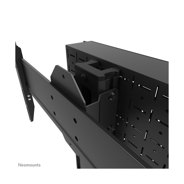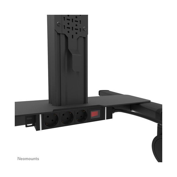 Neomounts Select FL50S-825BL1 è una piantana mobile per schermi piatti fino a 75" con una capacità di peso massima di 70 kg. La piantana è regolabile manualmente in altezza (114,5-153,5 cm), così come la testa della staffa. È incluso un vano chiudibile con serratura e ventilato, opzionale per l'installazione (sia in verticale che in orizzontale). Il carrello è dotato di pratiche maniglie e di quattro solide ruote a doppio bloccaggio da 10 cm che consentono di spostare e utilizzare il supporto da pavimento ovunque si desideri. Grazie alle grandi ruote, la mobilità del FL50S-825BL1 risulta facile anche sui tappeti o imperfezioni del piano. L'ingegnoso sistema interno di gestione dei cavi è dotato di diverse entrate e uscite per un uso flessibile (in alto, al centro dove è posizionato il lettore multimediale e in fondo al carrello) e nasconde e instrada i cavi dalla piantana allo schermo. La piantana è dotata di una pratica staffa per la gestione dei cavi sul retro. Inoltre, nella parte inferiore del carrello è disponibile uno spazio con fori di fissaggio per l'installazione di una ciabatta. Il kit AFLS-825BL1 per videobar e multimedia è disponibile come opzione e consente di installare sul carrello un ripiano separato per cam e dispositivi multimediali. Il kit include un adattatore per la barra Logitech Rally (Mini). Inoltre, il ripiano multimediale è adatto all'installazione, ad esempio, del Logitech Tap.