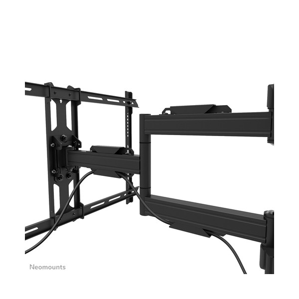 Il Neomounts Select WL40S-850BL16 è un supporto da parete full motion per schermi piatti fino a 70" con un peso massimo consigliato di 45 kg. La versatile tecnologia di inclinazione (14°) e rotazione (40°) consente di creare l'angolo di visione ottimale. Il supporto può essere facilmente livellato per una perfetta installazione. Il WL40S-850BL16 ha una profondità di 4,7-55,5 cm ed è adatto per schermi con fori VESA da 100x100 a 800x400 mm. Il supporto è dotato di un sistema Easy-release, che consente di fissare la TV in un batter d'occhio. Una livella a bolla d'aria è inclusa nel kit di montaggio, così come un modello di dima, per garantire una facile installazione del supporto. Il supporto è dotato di un sistema in acciaio di alta qualità per gestire eventuali cavi sciolti posti sul retro dello schermo.