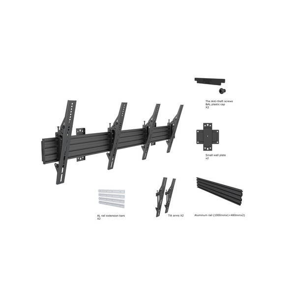 Multibrackets 4061. Peso massimo (capacità): 60 kg, Capienza minima dimensioni dello schermo: 101,6 cm (40"), Capienza massima dimensioni dello schermo: 165,1 cm (65"), Compatibilità interfaccia di montaggio (min): 100 x 100 mm, Compatibilità interfaccia di montaggio (max): 600 x 400 mm. Inclinazione: 0 - 15°, Angolo di rotazione: 360°. Colore del prodotto: Nero