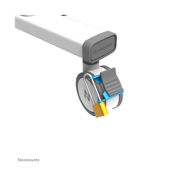 Neomounts ABL-875 è un bloccaggio del freno per le ruote dei carrelli FL50S-825 e FL55-875. Per evitare movimenti indesiderati del carrello, è possibile bloccare il freno delle ruote gemelle utilizzando l'ABL-875. I lucchetti possono essere facilmente posizionati sulle ruote del carrello (lucchetto non incluso), impedendo che vengano tolte dal freno. Il colore blu brillante ricorda chiaramente all'utente che le ruote sono bloccate. L'ABL-875 viene fornito come set di 2 lucchetti per freni.