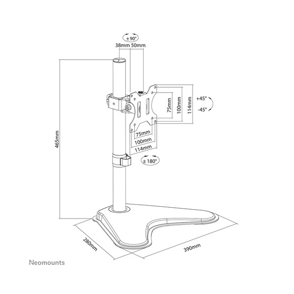 Neomounts FPMA-D550SBLACK è adatto per schermi fino a 32". La capacità di peso di questo prodotto è di 8 kg. Il supporto da scrivania è adatto per schermi che hanno VESA 75x75 o 100x100 mm; per dimensioni diverse, è possibile utilizzare le piastre adattatrici VESA Neomounts.