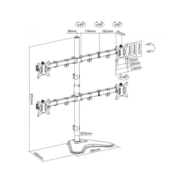 Equip 650127. Montaggio: Libera installazione, Peso massimo (capacità): 36 kg, Capienza minima dimensioni dello schermo: 43,2 cm (17"), Capienza massima dimensioni dello schermo: 81,3 cm (32"), Compatibilità interfaccia di montaggio (min): 75 x 75 mm, Compatibilità interfaccia di montaggio (max): 100 x 100 mm. Regolazione altezza, Inclinazione: -45 - 45°. Colore del prodotto: Nero