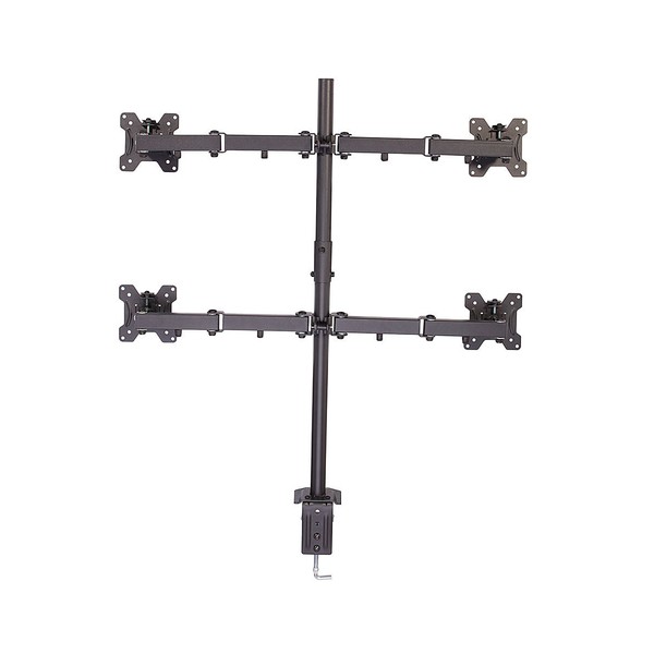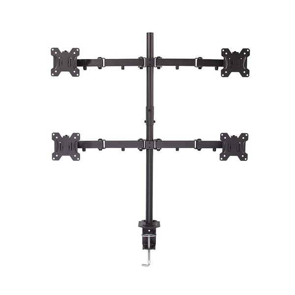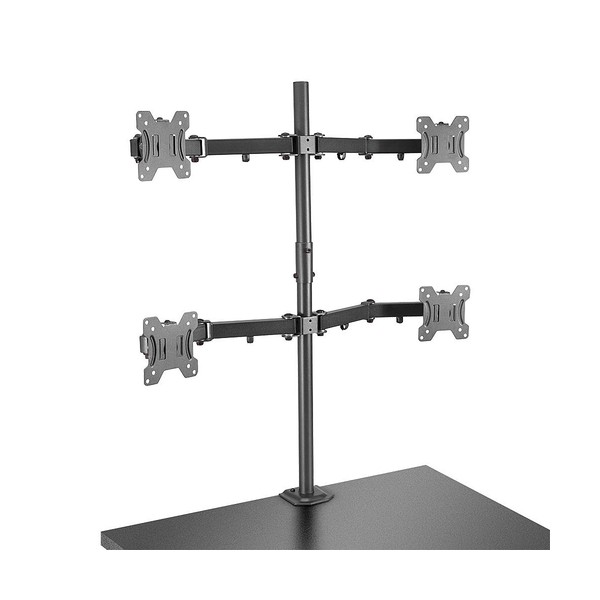 Questo supporto per monitor è una soluzione professionale per il montaggio di quattro schermi a una scrivania o tavolo. I monitor possono essere posizionati liberamente grazie ai bracci regolabili per assicurare sempre il miglior angolo di visuale, perfetto per postazioni di lavoro multi schermo o per gaming. Supporta monitor con fori in standard VESA da 100 x 100 o 75 x75mm.