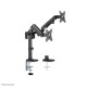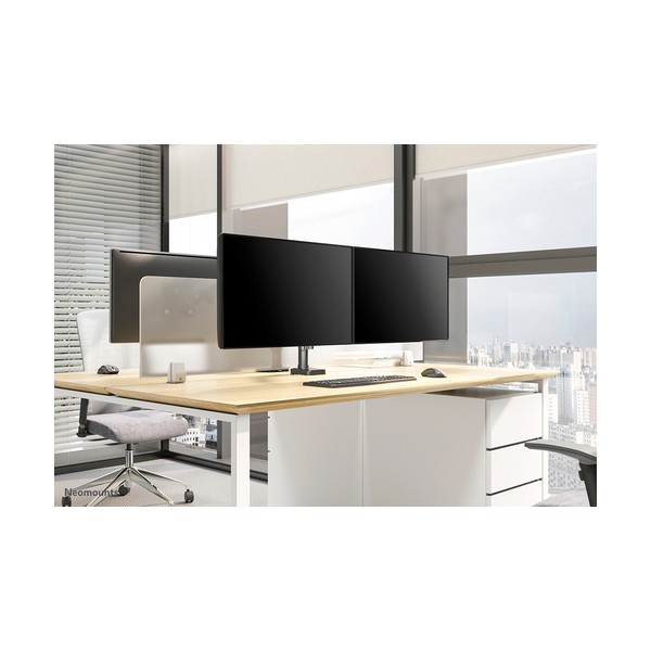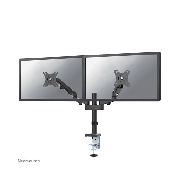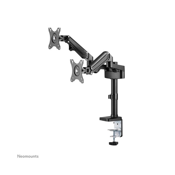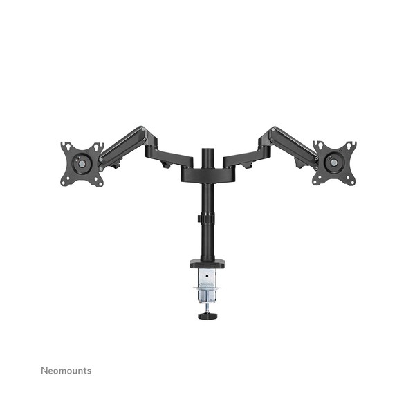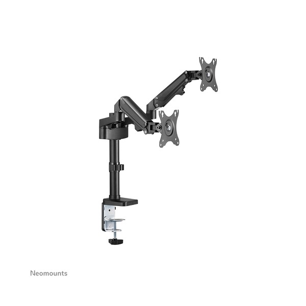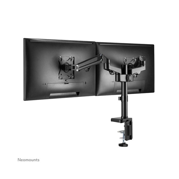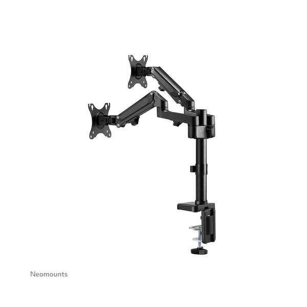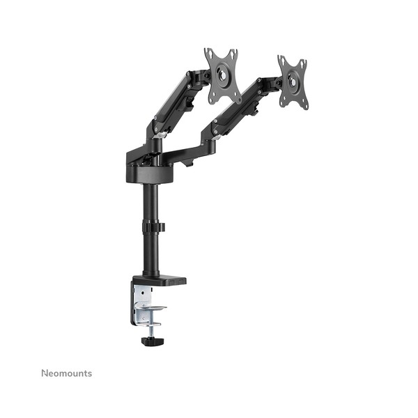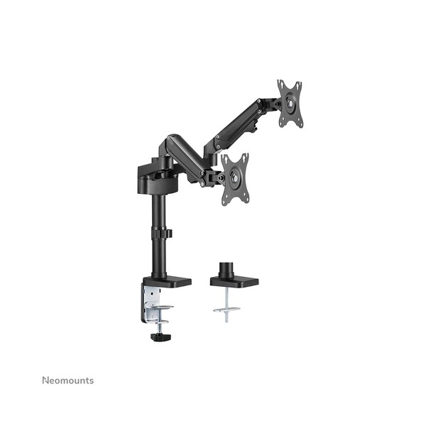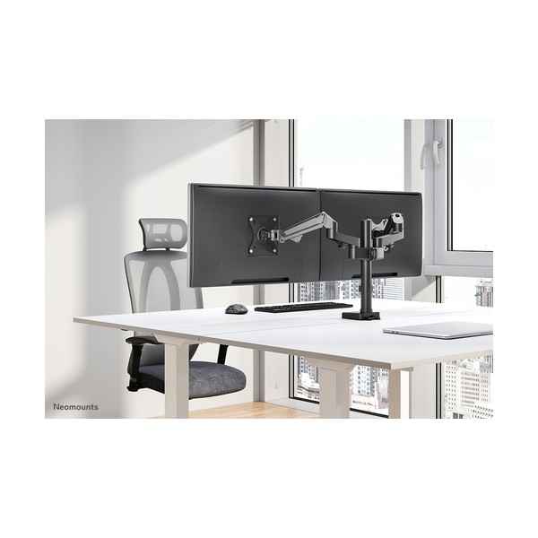 Il Neomounts DS70-750BL2 è un supporto da scrivania full motion per due schermi piatti fino a 27" con peso massimo di 7 kg per schermo. Grazie alla versatile inclinazione (90°), rotazione (360°) e oscillazione (180°), il supporto da tavolo può essere regolato a qualsiasi angolo di visione desiderato e può sfruttare appieno le possibilità degli schermi. Inoltre, il supporto ha la regolazione dell'altezza con sospensione a gas (7,3-48,1 cm) e la regolazione della profondità (0-37,8 cm) per ottenere la posizione di lavoro perfetta.