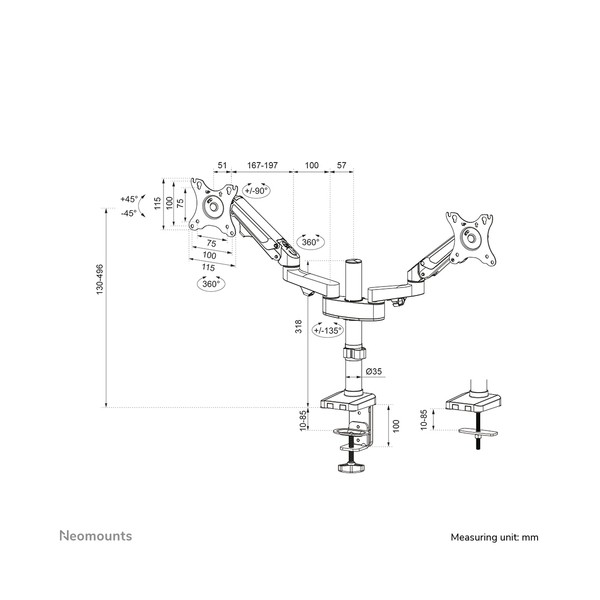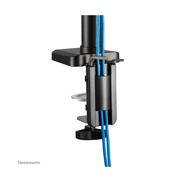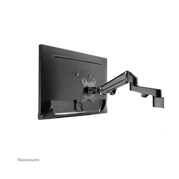 Il DS70-750BL2 è adatto per schermi con uno schema di foratura VESA di 75x75 o 100x100 mm. Neomounts offre varie piastre adattatrici VESA per diversi modelli di fori. Il DS70-750BL2 è dotato di un sistema VESA Easy-release. Per una facile installazione al tavolo viene fornito con un morsetto e un occhiello (entrambi presenti nella confezione).