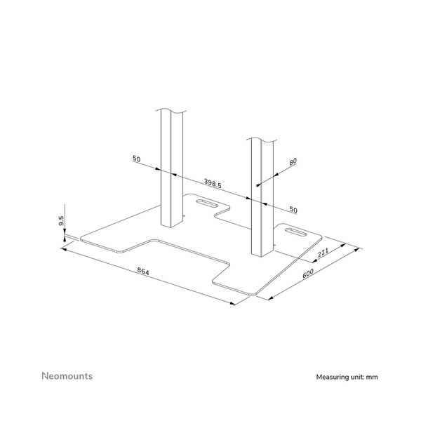 Neomounts AFP-875BL è una piastra da pavimento opzionale per la base mobile FL55-875BL1 e il supporto a parete WL55-875BL1. La piastra da pavimento è dotata di cuscinetti morbidi per proteggere il pavimento da eventuali danni. Se necessario, la piastra può essere fissata al pavimento. Tutto il materiale di installazione necessario è incluso.