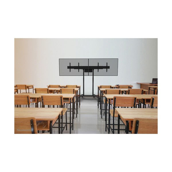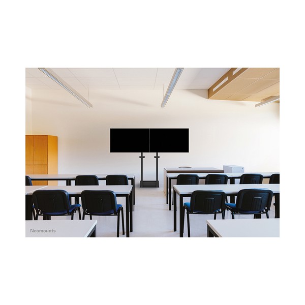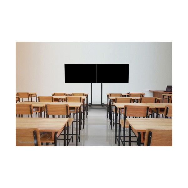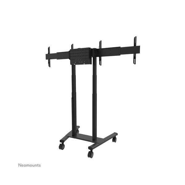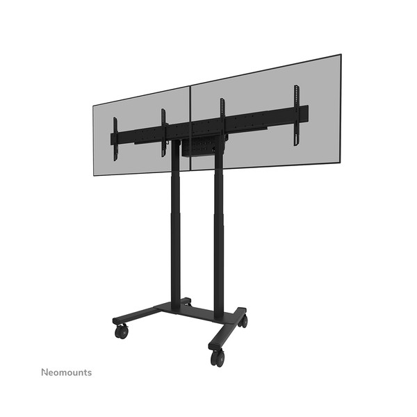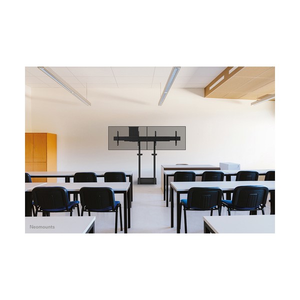 Neomounts ADM-875BL2 è un adattatore opzionale per doppio schermo per il supporto mobile da pavimento FL55-875BL1 e il supporto a parete WL55-875BL1. L'adattatore consente l'installazione di 2 schermi da 42" a 65" con un peso massimo di 50 kg per schermo. Le staffe regolabili in altezza garantiscono un perfetto allineamento degli schermi. È possibile bloccare queste staffe con un lucchetto (non fornito). È anche possibile installare uno schermo XXL fino a VESA 2000x600 mm e con un peso massimo di 100 kg.