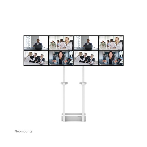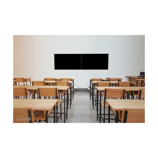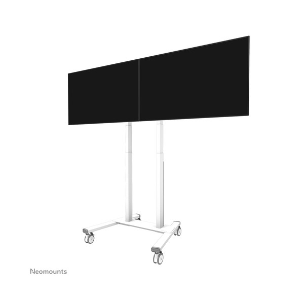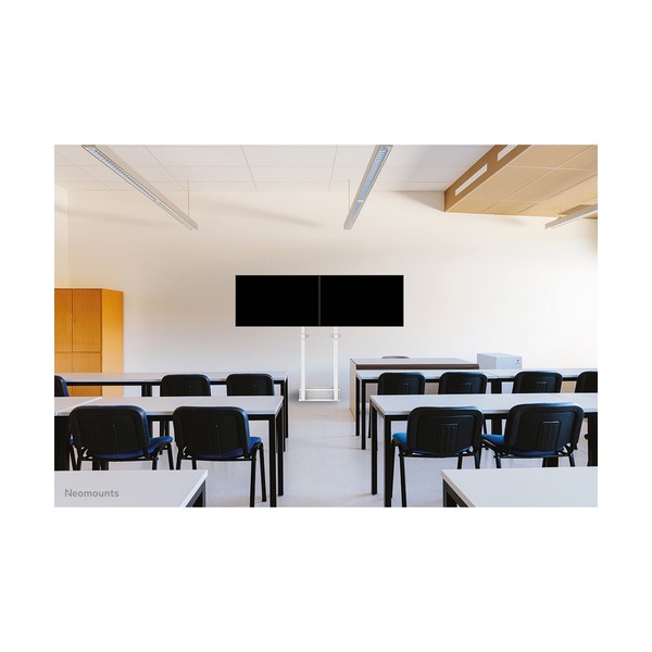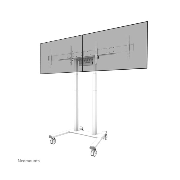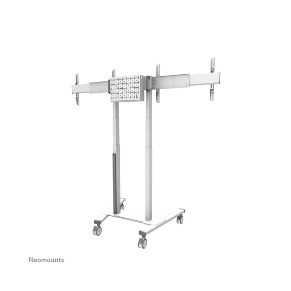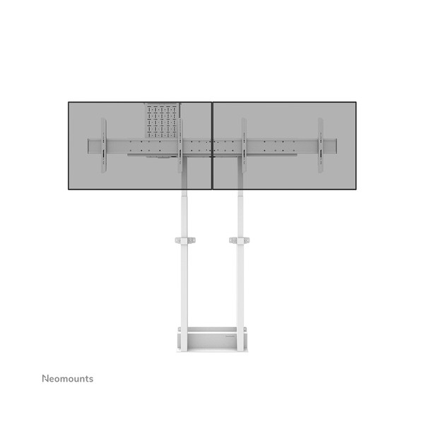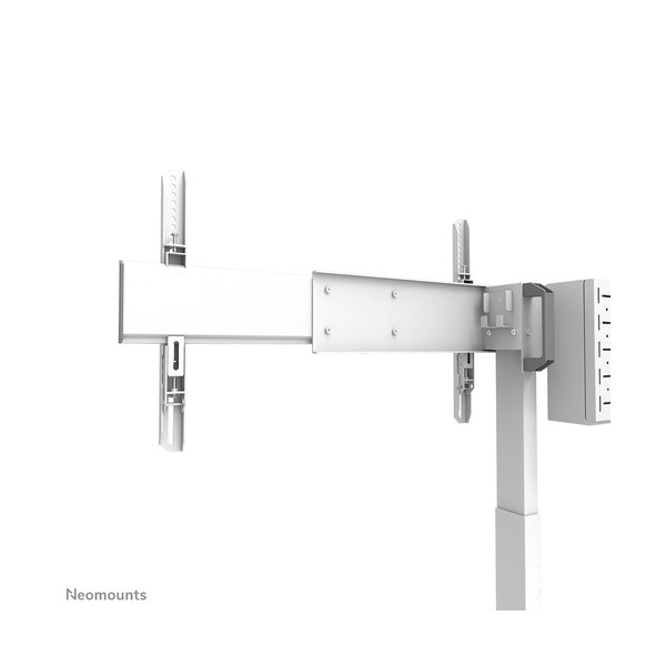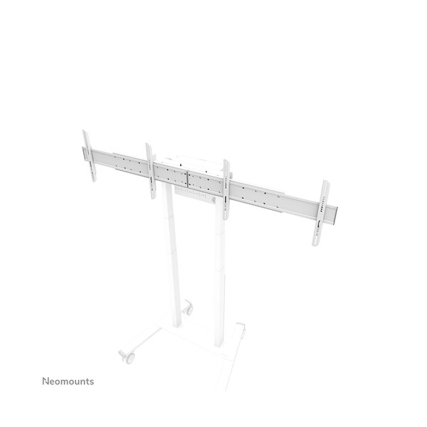 Neomounts ADM-875WH2 è un adattatore opzionale per doppio schermo per il supporto mobile da pavimento FL55-875WH1 e il supporto a parete WL55-875WH1. L'adattatore consente l'installazione di 2 schermi da 42" a 65" con un peso massimo di 50 kg per schermo. Le staffe regolabili in altezza garantiscono un perfetto allineamento degli schermi. È possibile bloccare queste staffe con un lucchetto (non fornito). È anche possibile installare uno schermo XXL fino a VESA 2000x600 mm e con un peso massimo di 100 kg.