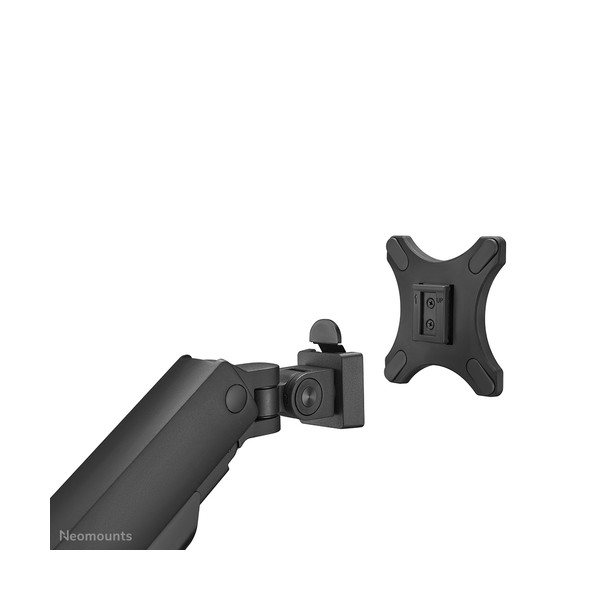 Le piastre VESA nere del NEXT One si integrano elegantemente con il retro nero dello schermo. Il DS70S-950BL1 è adatto a schermi con fori VESA da 75x75 o 100x100 mm. Per i fori non standard, Neomounts ha a disposizione diverse piastre di adattamento VESA opzionali. Il braccio del monitor è dotato di un sistema VESA a sgancio rapido e viene fornito con un morsetto topfix e un gommino per un'installazione rapida e semplice.