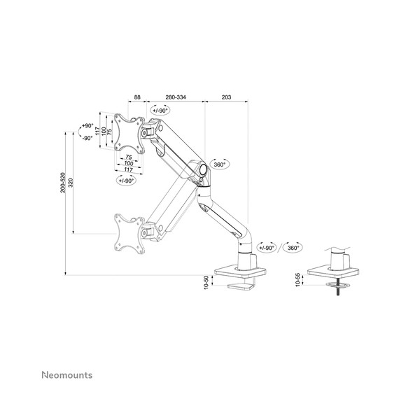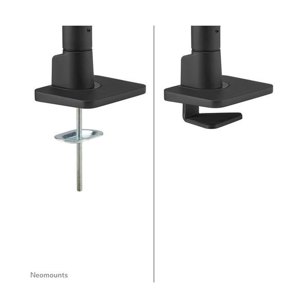 Neomounts DS70S-950BL1 NEXT One è un supporto da tavolo full motion per schermi fino a 49". Il DS70S-950BL1 è una vera e propria soluzione all-in-one per schermi da piccoli a grandi. Il NEXT One è dotato di una testa rinforzata progettata appositamente per supportare anche schermi curvi ultralarghi e presenta una capacità di peso massima superiore, fino a 18 kg (curvo 15 kg). La versatile tecnologia di inclinazione (180°), rotazione (360°) e rotazione (180°) consente al supporto di cambiare qualsiasi angolo di visione per sfruttare appieno le capacità dello schermo. Inoltre, il supporto è dotato di molla a gas per la regolazione dell'altezza (20-52 cm) e della profondità (8,8-62,5 cm), per creare la posizione di lavoro perfetta.
