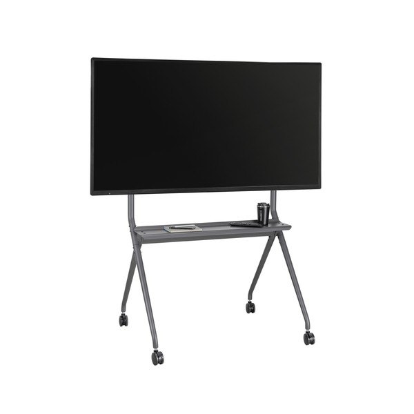 Il supporto per TV / Monitor Interattivo portatile è dotato di un robusto ripiano multimediale per contenere un lettore DVD o un'attrezzatura da gioco